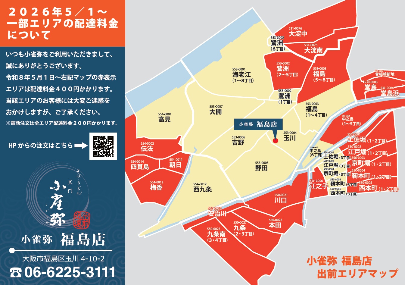 | 配達エリア | 大阪市福島区・此花区・西区・北区(一部エリア除く) » |