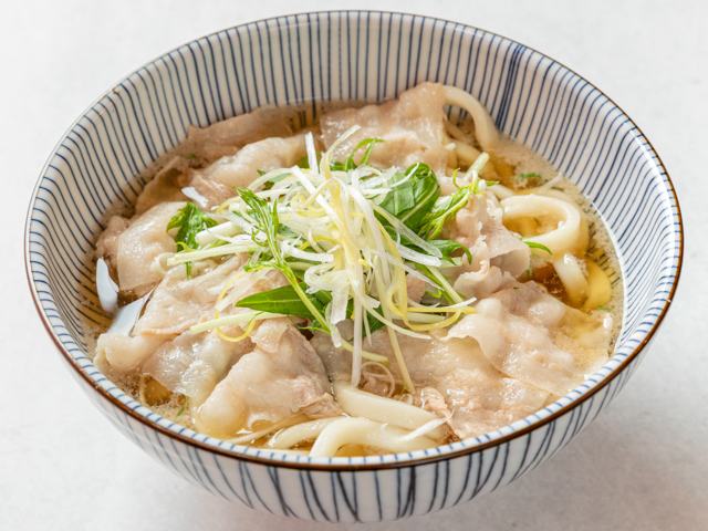 茶美豚と水菜のハリハリうどん・そば