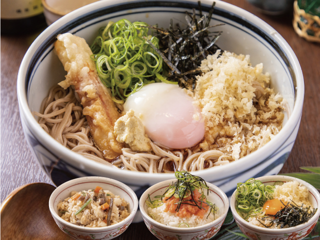 【冷】ぶっかけそば定食【肉めし付】 ※卵別容器